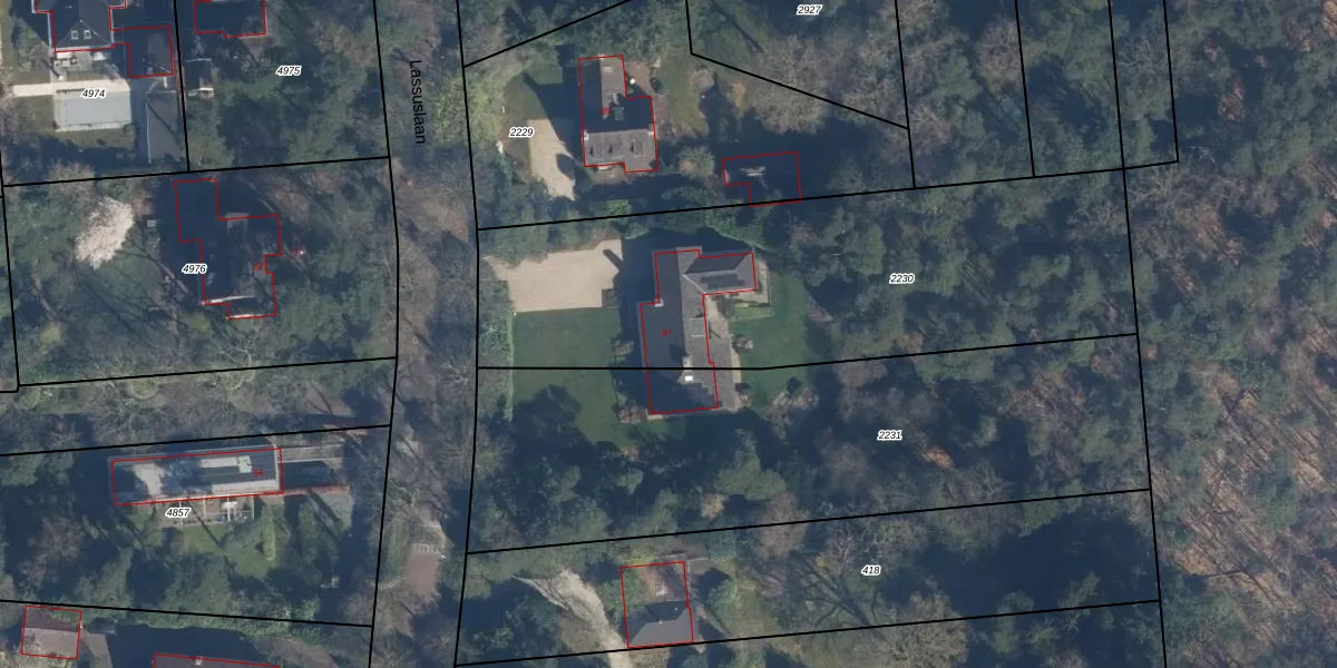 Het perceel waarop Lassuslaan 87 staat heeft een oppervlakte van 2370 m². Dit is een zeer groot perceel. De perceeloppervlakte wordt geregistreerd door het Kadaster. Gedetailleerde informatie over de maten van dit perceel kunt u vinden in het rapport Kadastrale kaart met maatvoering van Lassuslaan 87.