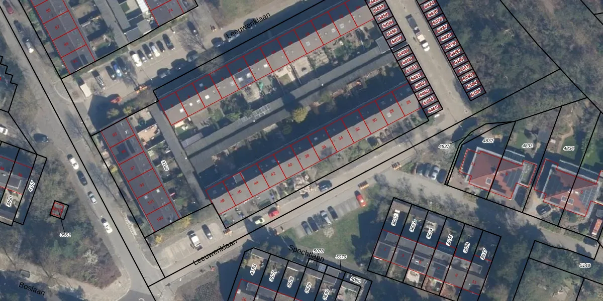 Het perceel waarop Leeuweriklaan 38 staat heeft een oppervlakte van 4920 m². Dit is een zeer groot perceel. De perceeloppervlakte wordt geregistreerd door het Kadaster. Gedetailleerde informatie over de maten van dit perceel kunt u vinden in het rapport Kadastrale kaart met maatvoering van Leeuweriklaan 38.