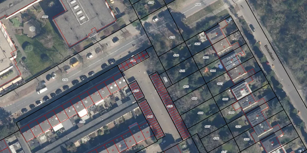 Het adres is gelegen op perceel 4142 in de sectie E en de kadastrale gemeente De Bilt. De kadastrale aanduiding is aldus BIL01-E-4142. Het perceel is 291 m² groot. Dat is kleiner dan de gemiddelde perceeloppervlakte in De Bilt, dat op 2129,18 m² ligt. De grootste perceeloppervlakte in de kadastrale gemeente is 77,4 ha. De kleinste oppervlakte bedraagt 0 m². Op het perceel zijn 16 adressen aanwezig. In de Basisregistratie Kadaster (BRK) werden de grenzen van het perceel geregistreerd op 19-09-1997.