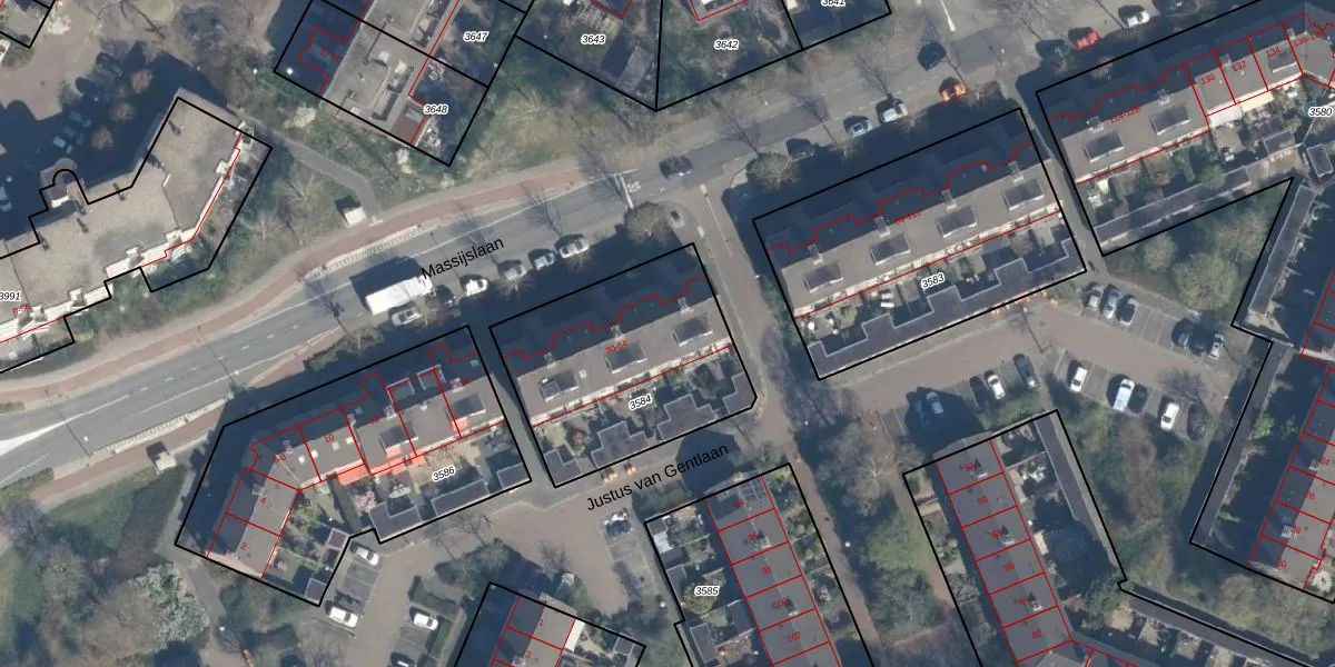 Het perceel waarop Massijslaan 56 staat heeft een oppervlakte van 850 m². Dit is een groot perceel. De perceeloppervlakte wordt geregistreerd door het Kadaster. Gedetailleerde informatie over de maten van dit perceel kunt u vinden in het rapport Kadastrale kaart met maatvoering van Massijslaan 56.