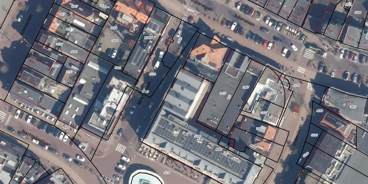 Het perceel waarop Melchiorlaan 8 staat heeft een oppervlakte van 1800 m². Dit is een zeer groot perceel. De perceeloppervlakte wordt geregistreerd door het Kadaster. Gedetailleerde informatie over de maten van dit perceel kunt u vinden in het rapport Kadastrale kaart met maatvoering van Melchiorlaan 8.