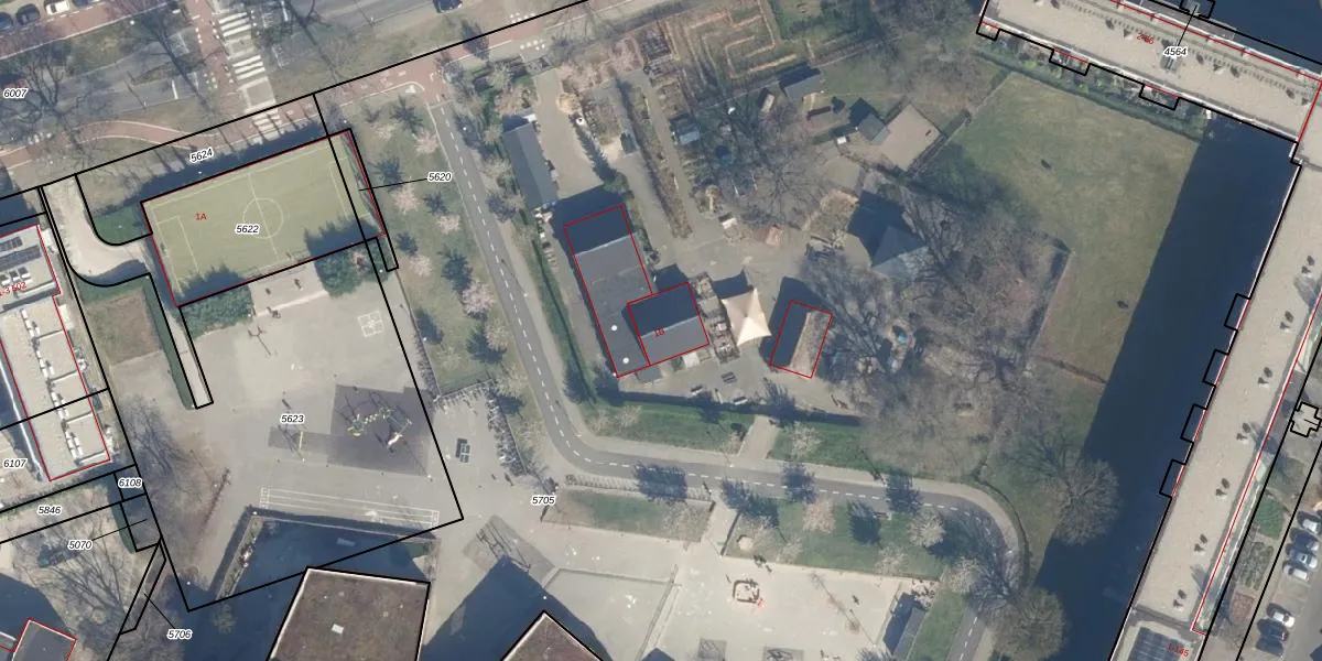 Het perceel waarop Melkweg 1-B staat heeft een oppervlakte van 2,1 ha. Dit is een zeer groot perceel. De perceeloppervlakte wordt geregistreerd door het Kadaster. Gedetailleerde informatie over de maten van dit perceel kunt u vinden in het rapport Kadastrale kaart met maatvoering van Melkweg 1-B.