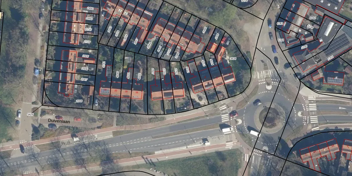 Gebruik de zoekbalk of klik op een perceel voor informatie over de adressen binnen dit perceel.
