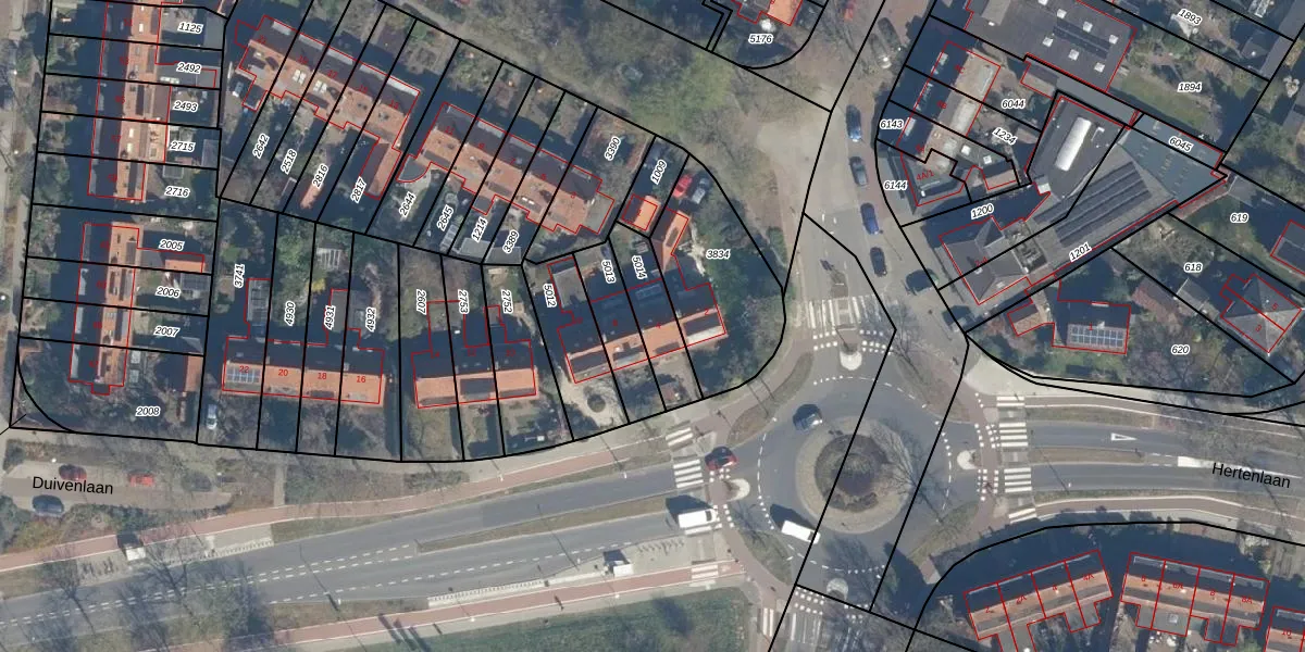 Gebruik de zoekbalk of klik op een perceel voor informatie over de adressen binnen dit perceel.