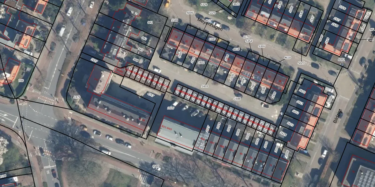Gebruik de zoekbalk of klik op een perceel voor informatie over de adressen binnen dit perceel.