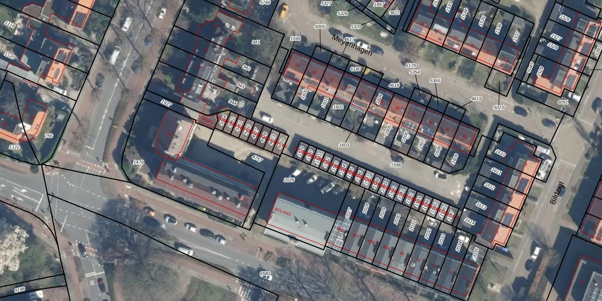 Gebruik de zoekbalk of klik op een perceel voor informatie over de adressen binnen dit perceel.