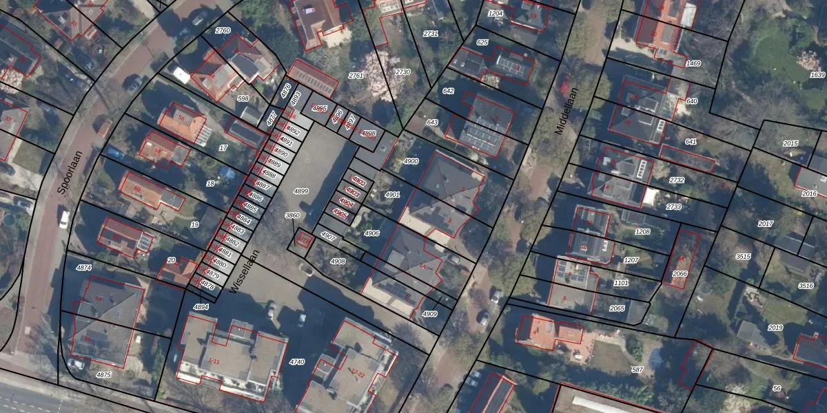 Gebruik de zoekbalk of klik op een perceel voor informatie over de adressen binnen dit perceel.