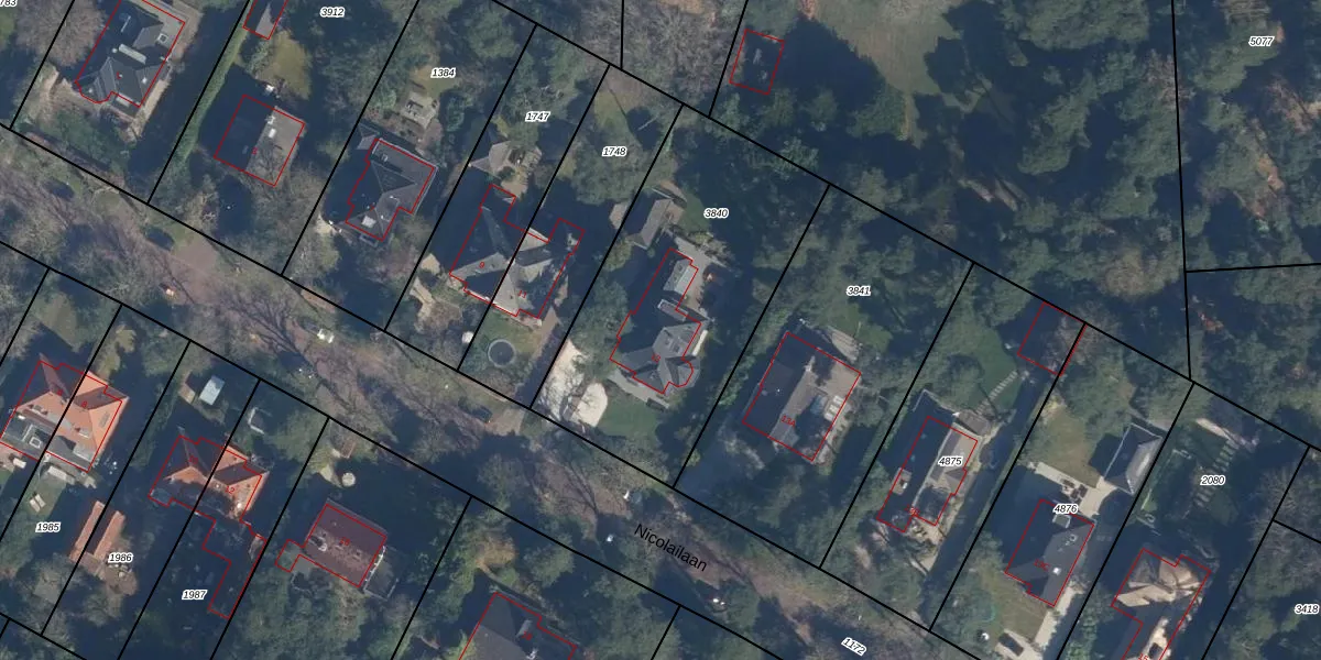 Het perceel waarop Nicolailaan 13 staat heeft een oppervlakte van 1310 m². Dit is een zeer groot perceel. De perceeloppervlakte wordt geregistreerd door het Kadaster. Gedetailleerde informatie over de maten van dit perceel kunt u vinden in het rapport Kadastrale kaart met maatvoering van Nicolailaan 13.