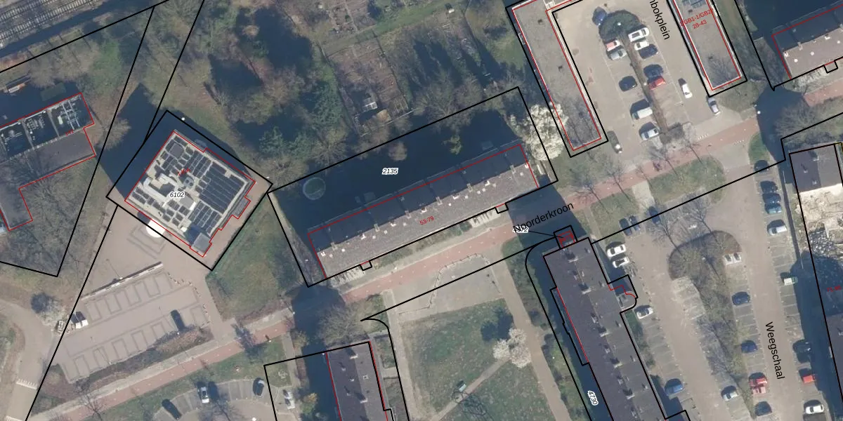 Het perceel waarop Noorderkroon 62 staat heeft een oppervlakte van 1559 m². Dit is een zeer groot perceel. De perceeloppervlakte wordt geregistreerd door het Kadaster. Gedetailleerde informatie over de maten van dit perceel kunt u vinden in het rapport Kadastrale kaart met maatvoering van Noorderkroon 62.