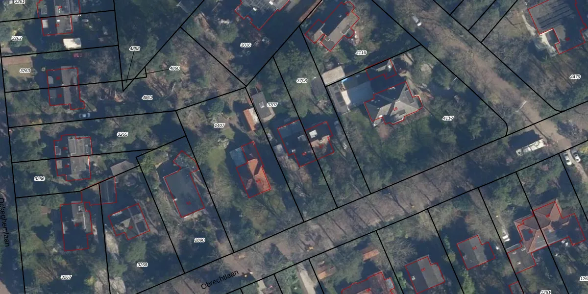 Het perceel waarop Obrechtlaan 55 staat heeft een oppervlakte van 664 m². Dit is een groot perceel. De perceeloppervlakte wordt geregistreerd door het Kadaster. Gedetailleerde informatie over de maten van dit perceel kunt u vinden in het rapport Kadastrale kaart met maatvoering van Obrechtlaan 55.