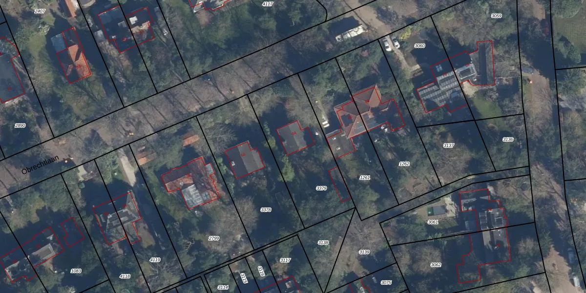 Het perceel waarop Obrechtlaan 64 staat heeft een oppervlakte van 937 m². Dit is een groot perceel. De perceeloppervlakte wordt geregistreerd door het Kadaster. Gedetailleerde informatie over de maten van dit perceel kunt u vinden in het rapport Kadastrale kaart met maatvoering van Obrechtlaan 64.