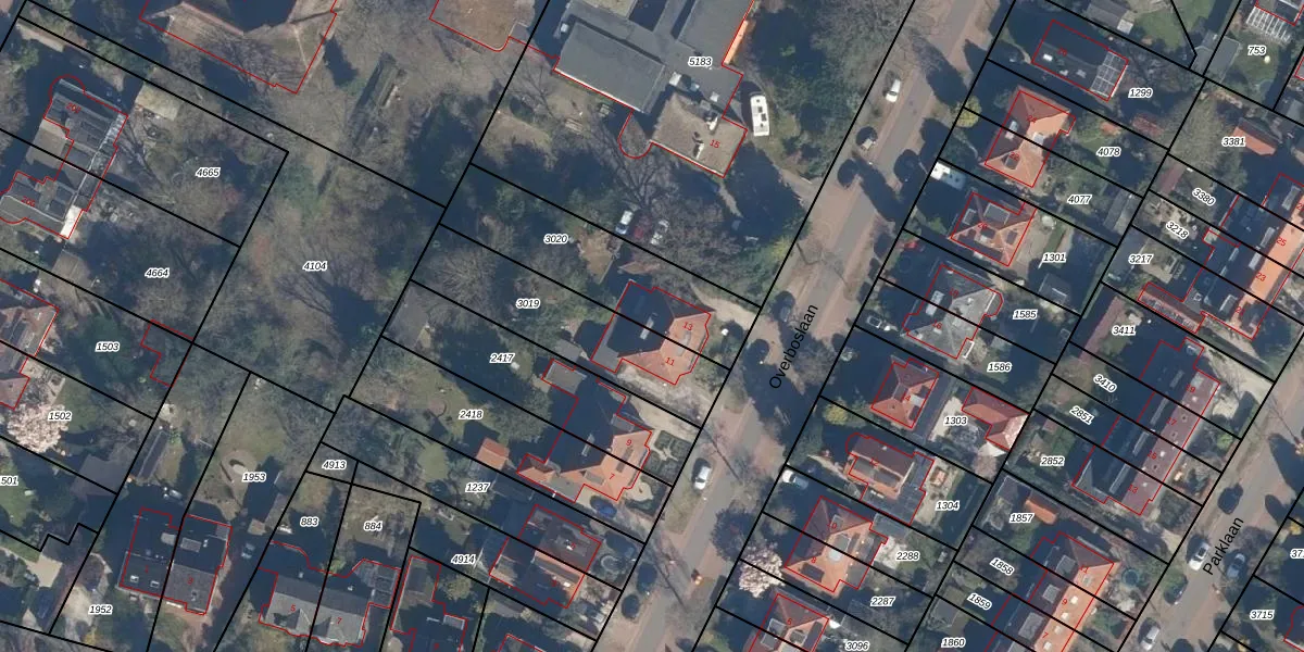 Het perceel waarop Overboslaan 13 staat heeft een oppervlakte van 523 m². Dit is een groot perceel. De perceeloppervlakte wordt geregistreerd door het Kadaster. Gedetailleerde informatie over de maten van dit perceel kunt u vinden in het rapport Kadastrale kaart met maatvoering van Overboslaan 13.