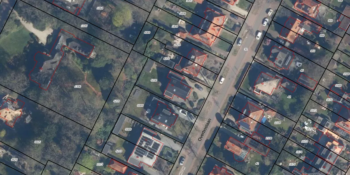 Het perceel waarop Overboslaan 29 staat heeft een oppervlakte van 694 m². Dit is een groot perceel. De perceeloppervlakte wordt geregistreerd door het Kadaster. Gedetailleerde informatie over de maten van dit perceel kunt u vinden in het rapport Kadastrale kaart met maatvoering van Overboslaan 29.