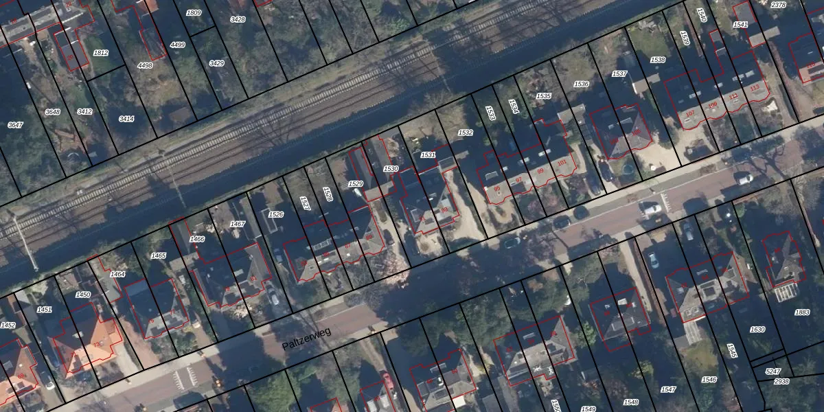 Het perceel waarop Paltzerweg 91 staat heeft een oppervlakte van 318 m². Dit is een groot perceel. De perceeloppervlakte wordt geregistreerd door het Kadaster. Gedetailleerde informatie over de maten van dit perceel kunt u vinden in het rapport Kadastrale kaart met maatvoering van Paltzerweg 91.
