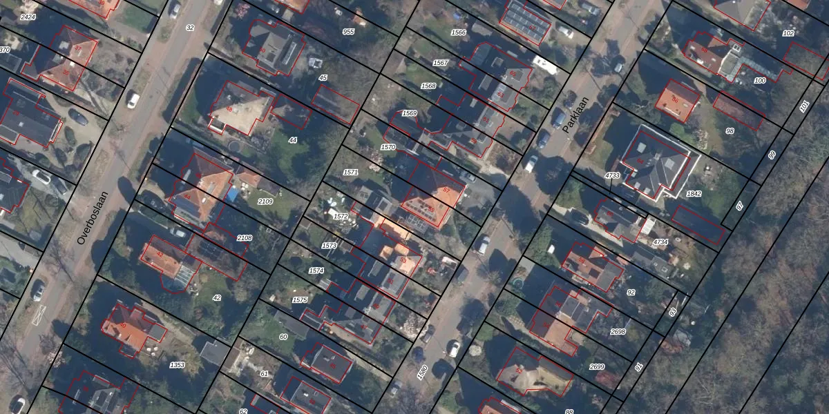 Het perceel waarop Parklaan 55 staat heeft een oppervlakte van 385 m². Dit is een groot perceel. De perceeloppervlakte wordt geregistreerd door het Kadaster. Gedetailleerde informatie over de maten van dit perceel kunt u vinden in het rapport Kadastrale kaart met maatvoering van Parklaan 55.