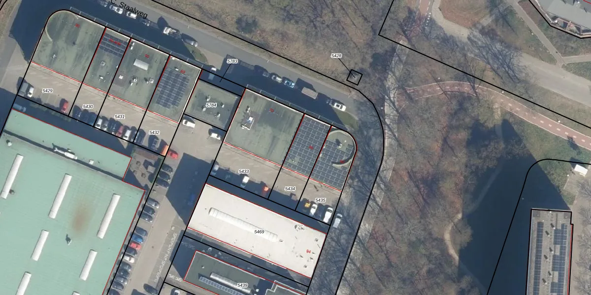 P.C. Staalweg 80 is gelegen op kadastraal perceel BIL01F5434. Deze kadastrale aanduiding is uniek en wordt gebruikt door het Kadaster om eigendomsrechten en andere zakelijke rechten vast te leggen. Het perceel maakt onderdeel uit van de kadastrale gemeente De Bilt.