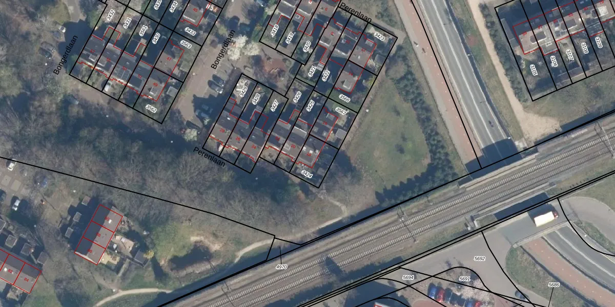 Het perceel waarop Perenlaan 18 staat heeft een oppervlakte van 150 m². Dit is een middelgroot perceel. De perceeloppervlakte wordt geregistreerd door het Kadaster. Gedetailleerde informatie over de maten van dit perceel kunt u vinden in het rapport Kadastrale kaart met maatvoering van Perenlaan 18.