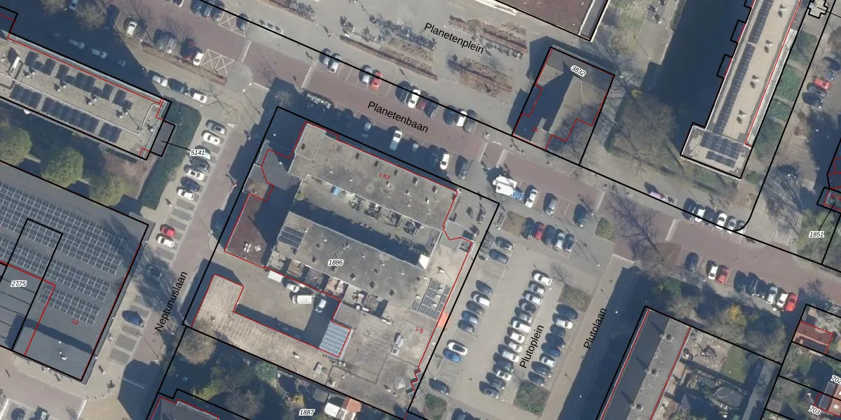 Het perceel waarop Planetenbaan 15-A staat heeft een oppervlakte van 3261 m². Dit is een zeer groot perceel. De perceeloppervlakte wordt geregistreerd door het Kadaster. Gedetailleerde informatie over de maten van dit perceel kunt u vinden in het rapport Kadastrale kaart met maatvoering van Planetenbaan 15-A.