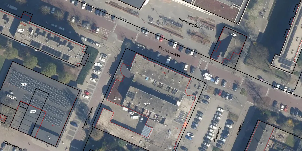 Het perceel waarop Planetenbaan 23 staat heeft een oppervlakte van 3261 m². Dit is een zeer groot perceel. De perceeloppervlakte wordt geregistreerd door het Kadaster. Gedetailleerde informatie over de maten van dit perceel kunt u vinden in het rapport Kadastrale kaart met maatvoering van Planetenbaan 23.
