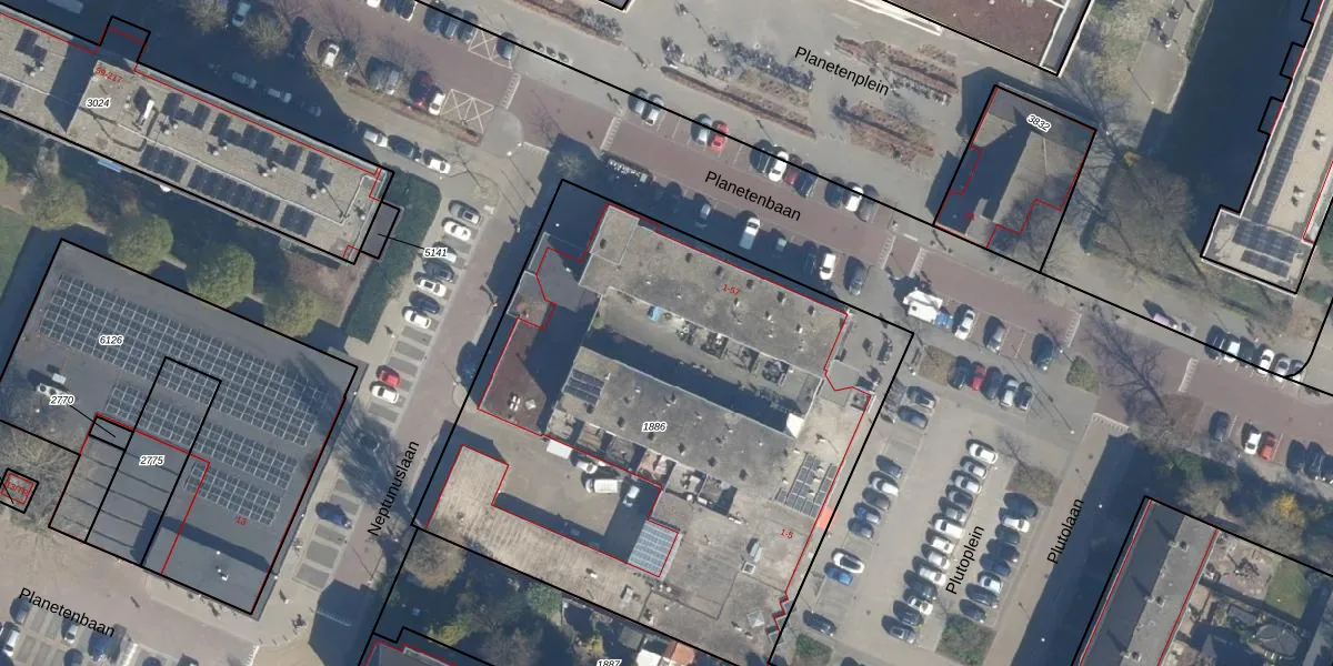 Het perceel waarop Planetenbaan 39 staat heeft een oppervlakte van 3261 m². Dit is een zeer groot perceel. De perceeloppervlakte wordt geregistreerd door het Kadaster. Gedetailleerde informatie over de maten van dit perceel kunt u vinden in het rapport Kadastrale kaart met maatvoering van Planetenbaan 39.