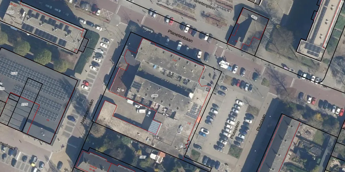 Het perceel waarop Planetenbaan 49 staat heeft een oppervlakte van 3261 m². Dit is een zeer groot perceel. De perceeloppervlakte wordt geregistreerd door het Kadaster. Gedetailleerde informatie over de maten van dit perceel kunt u vinden in het rapport Kadastrale kaart met maatvoering van Planetenbaan 49.