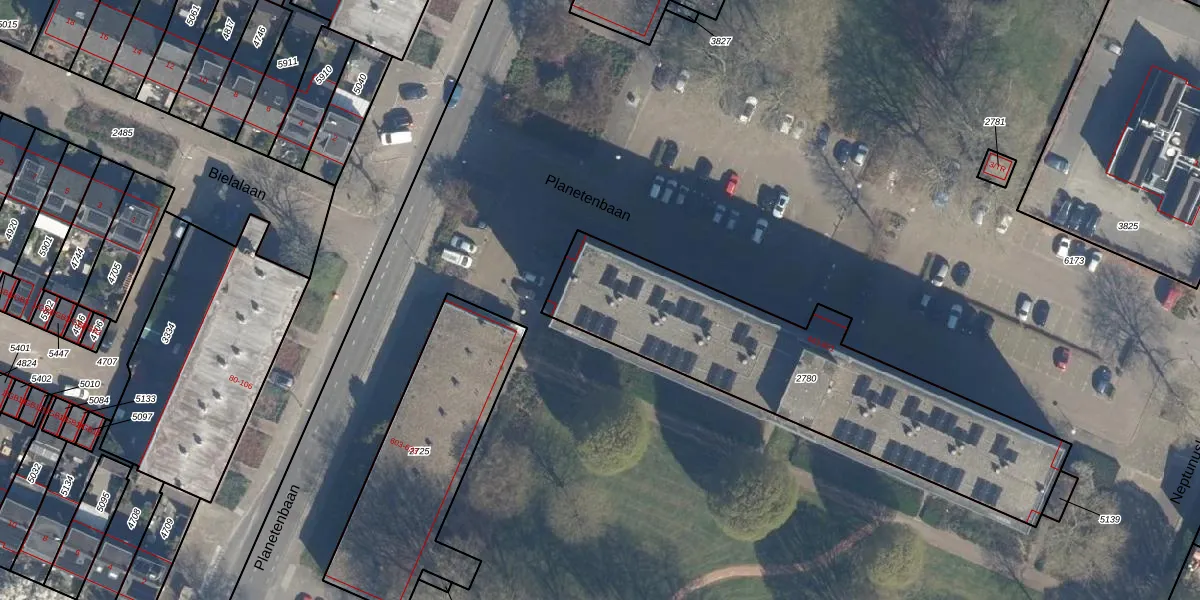 Planetenbaan 559 is gelegen op kadastraal perceel BIL01F2780. Deze kadastrale aanduiding is uniek en wordt gebruikt door het Kadaster om eigendomsrechten en andere zakelijke rechten vast te leggen. Het perceel maakt onderdeel uit van de kadastrale gemeente De Bilt.