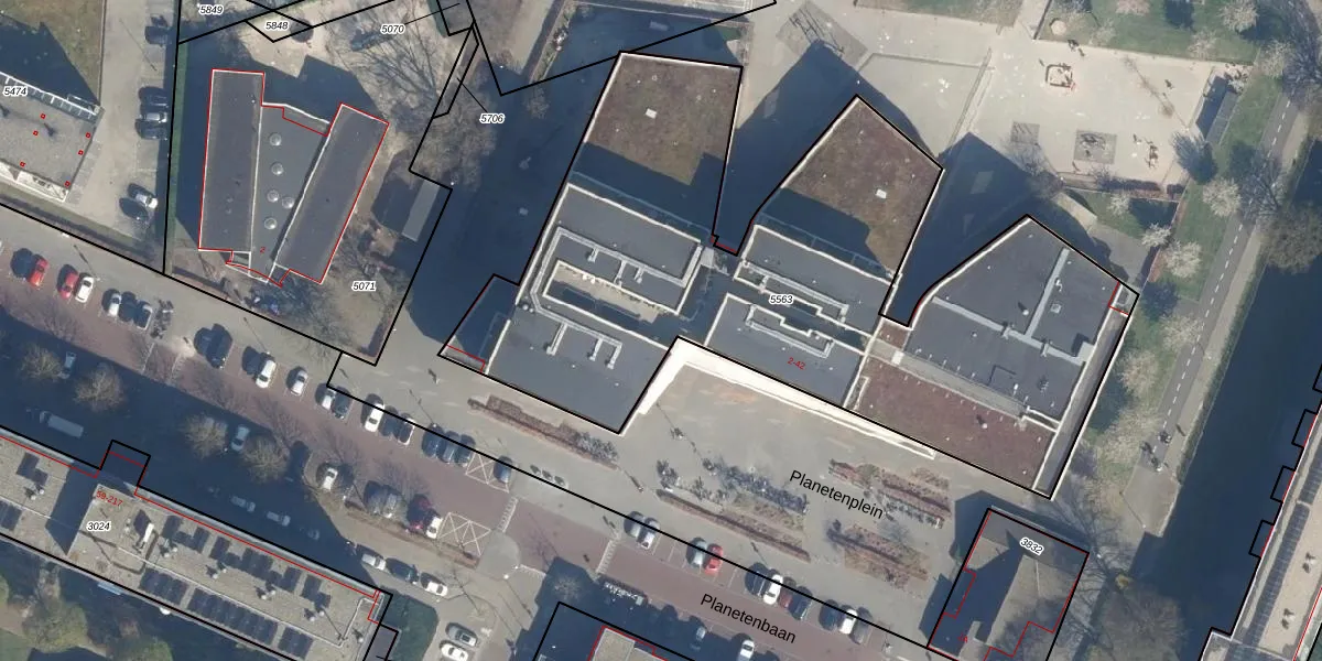 Het perceel waarop Planetenplein 18 staat heeft een oppervlakte van 3425 m². Dit is een zeer groot perceel. De perceeloppervlakte wordt geregistreerd door het Kadaster. Gedetailleerde informatie over de maten van dit perceel kunt u vinden in het rapport Kadastrale kaart met maatvoering van Planetenplein 18.