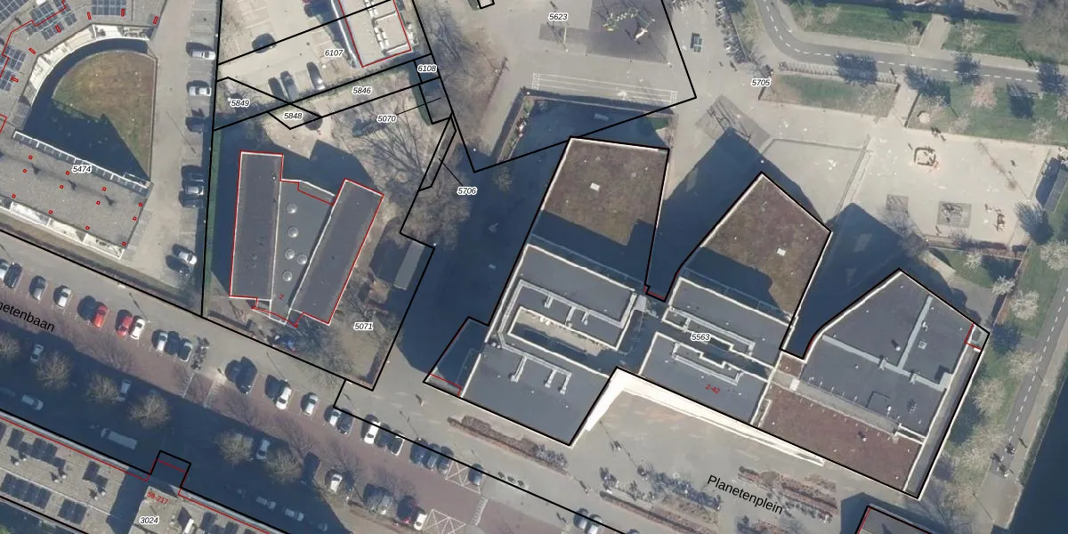 Het perceel waarop Planetenplein 40 staat heeft een oppervlakte van 3425 m². Dit is een zeer groot perceel. De perceeloppervlakte wordt geregistreerd door het Kadaster. Gedetailleerde informatie over de maten van dit perceel kunt u vinden in het rapport Kadastrale kaart met maatvoering van Planetenplein 40.