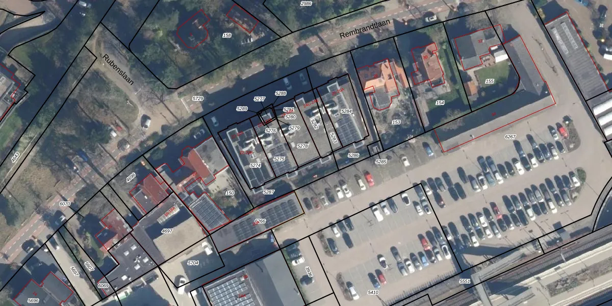 Het perceel waarop Rembrandtlaan 24-B staat heeft een oppervlakte van 170 m². Dit is een middelgroot perceel. De perceeloppervlakte wordt geregistreerd door het Kadaster. Gedetailleerde informatie over de maten van dit perceel kunt u vinden in het rapport Kadastrale kaart met maatvoering van Rembrandtlaan 24-B.