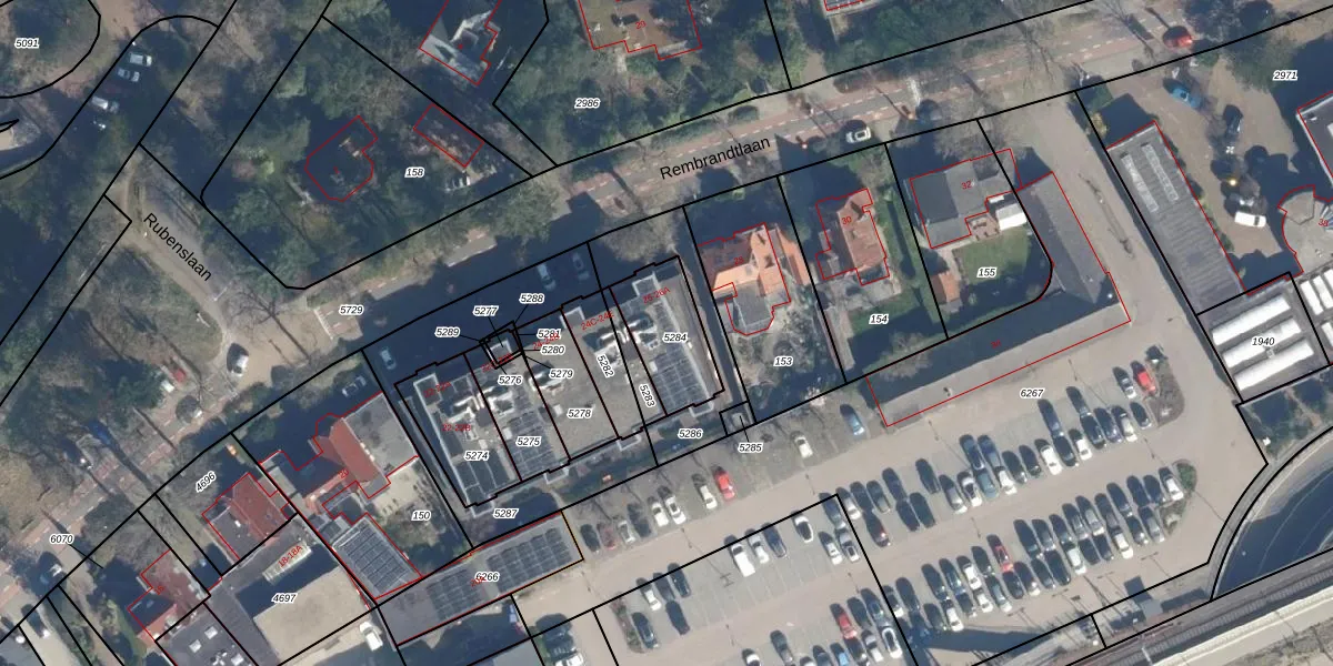 Het perceel waarop Rembrandtlaan 26-A staat heeft een oppervlakte van 225 m². Dit is een middelgroot perceel. De perceeloppervlakte wordt geregistreerd door het Kadaster. Gedetailleerde informatie over de maten van dit perceel kunt u vinden in het rapport Kadastrale kaart met maatvoering van Rembrandtlaan 26-A.
