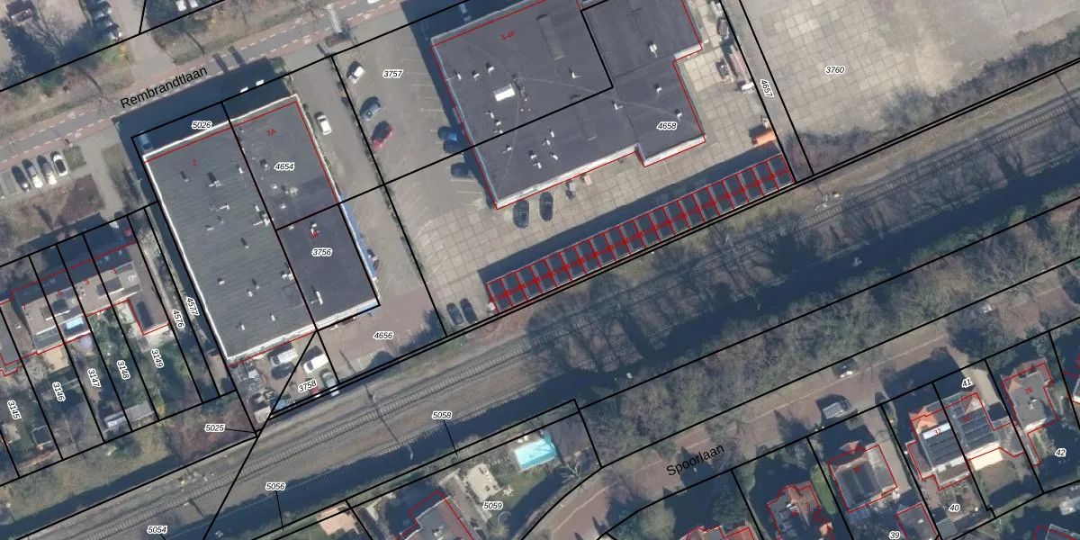 Het perceel waarop Rembrandtlaan 4-GB17 staat heeft een oppervlakte van 2644 m². Dit is een zeer groot perceel. De perceeloppervlakte wordt geregistreerd door het Kadaster. Gedetailleerde informatie over de maten van dit perceel kunt u vinden in het rapport Kadastrale kaart met maatvoering van Rembrandtlaan 4-GB17.