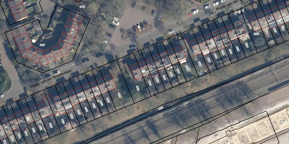 Het perceel waarop Rogier van der Weydenlaan 55 staat heeft een oppervlakte van 176 m². Dit is een middelgroot perceel. De perceeloppervlakte wordt geregistreerd door het Kadaster. Gedetailleerde informatie over de maten van dit perceel kunt u vinden in het rapport Kadastrale kaart met maatvoering van Rogier van der Weydenlaan 55.