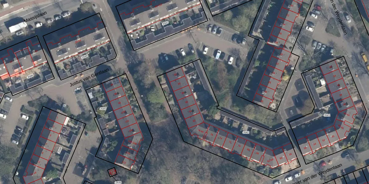 Het perceel waarop Rogier van der Weydenlaan 88 staat heeft een oppervlakte van 2101 m². Dit is een zeer groot perceel. De perceeloppervlakte wordt geregistreerd door het Kadaster. Gedetailleerde informatie over de maten van dit perceel kunt u vinden in het rapport Kadastrale kaart met maatvoering van Rogier van der Weydenlaan 88.