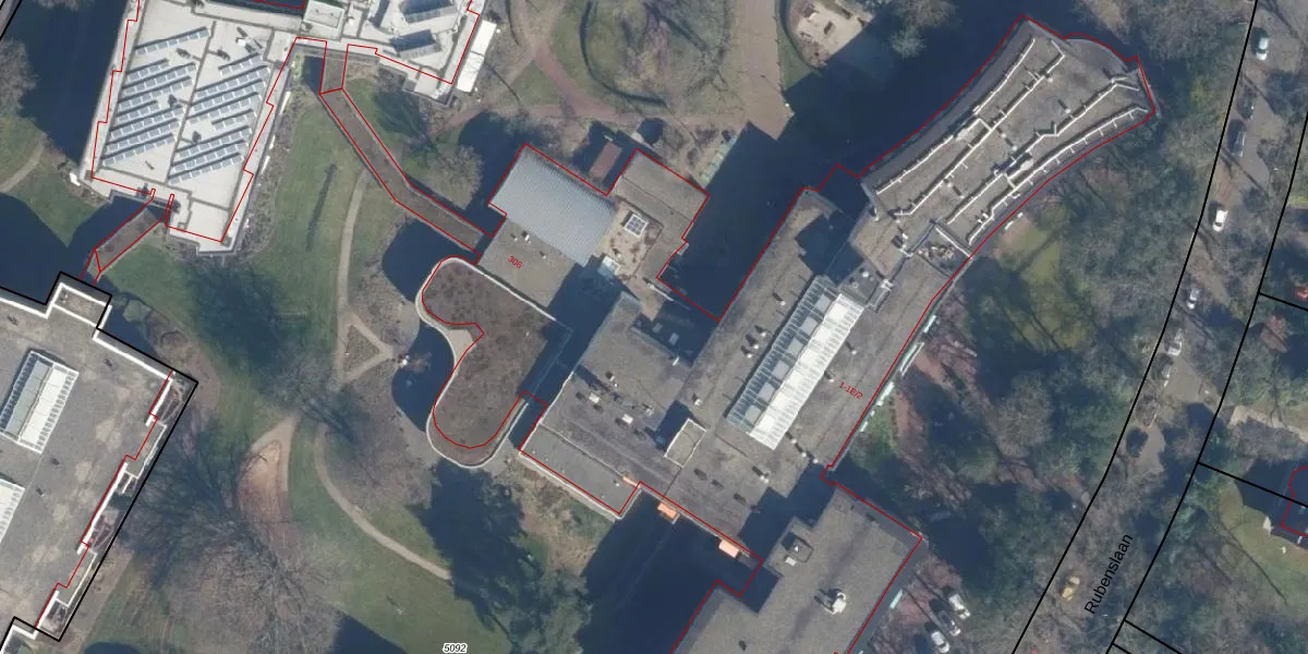 Het perceel waarop Rubenslaan 1-E-2 staat heeft een oppervlakte van 4,2 ha. Dit is een zeer groot perceel. De perceeloppervlakte wordt geregistreerd door het Kadaster. Gedetailleerde informatie over de maten van dit perceel kunt u vinden in het rapport Kadastrale kaart met maatvoering van Rubenslaan 1-E-2.
