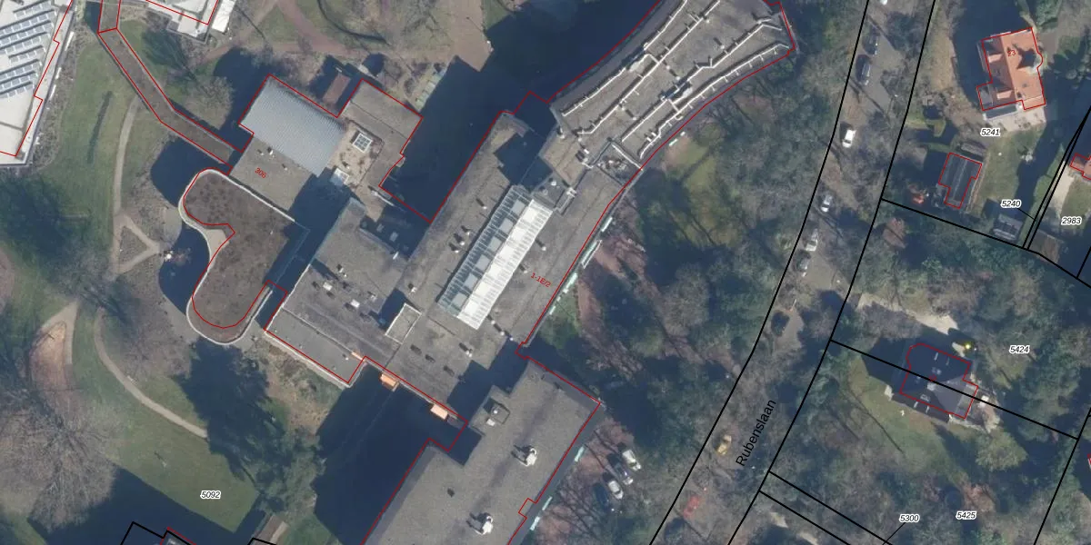 Het perceel waarop Rubenslaan 1-026 staat heeft een oppervlakte van 4,2 ha. Dit is een zeer groot perceel. De perceeloppervlakte wordt geregistreerd door het Kadaster. Gedetailleerde informatie over de maten van dit perceel kunt u vinden in het rapport Kadastrale kaart met maatvoering van Rubenslaan 1-026.