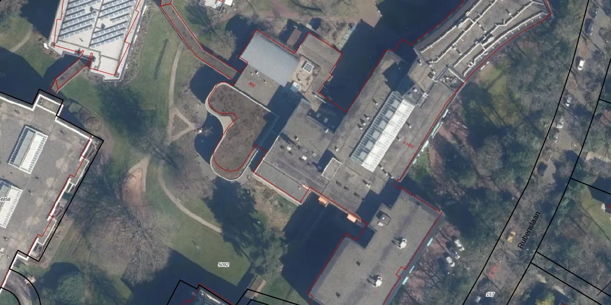 Het perceel waarop Rubenslaan 1-303 staat heeft een oppervlakte van 4,2 ha. Dit is een zeer groot perceel. De perceeloppervlakte wordt geregistreerd door het Kadaster. Gedetailleerde informatie over de maten van dit perceel kunt u vinden in het rapport Kadastrale kaart met maatvoering van Rubenslaan 1-303.