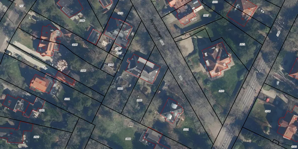 Ruysdaellaan 1 is gelegen op kadastraal perceel BIL01A2992. Deze kadastrale aanduiding is uniek en wordt gebruikt door het Kadaster om eigendomsrechten en andere zakelijke rechten vast te leggen. Het perceel maakt onderdeel uit van de kadastrale gemeente De Bilt.