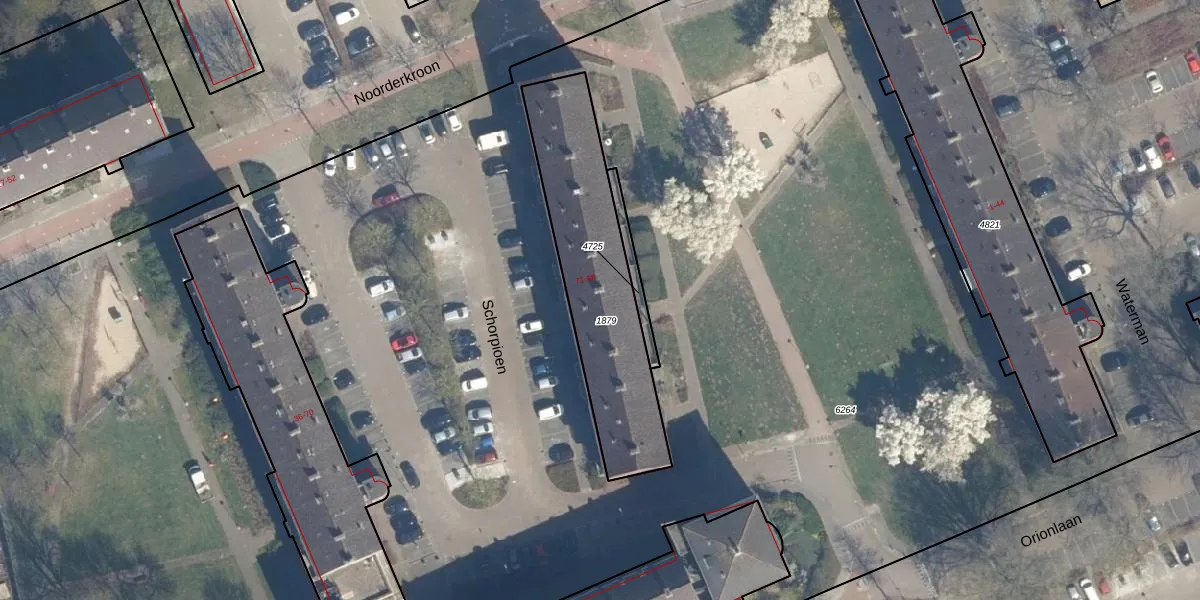 Het perceel waarop Schorpioen 76 staat heeft een oppervlakte van 735 m². Dit is een groot perceel. De perceeloppervlakte wordt geregistreerd door het Kadaster. Gedetailleerde informatie over de maten van dit perceel kunt u vinden in het rapport Kadastrale kaart met maatvoering van Schorpioen 76.