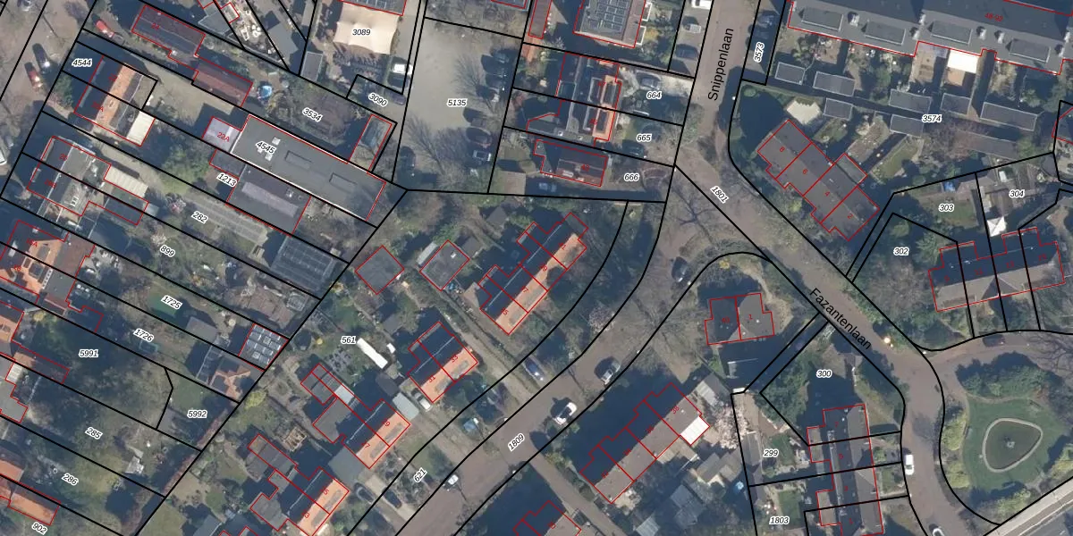 Het perceel waarop Snippenlaan 39 staat heeft een oppervlakte van 4450 m². Dit is een zeer groot perceel. De perceeloppervlakte wordt geregistreerd door het Kadaster. Gedetailleerde informatie over de maten van dit perceel kunt u vinden in het rapport Kadastrale kaart met maatvoering van Snippenlaan 39.