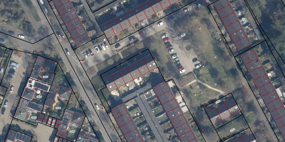 Staartmeeslaan 10 is gelegen op kadastraal perceel BIL01E3757. Deze kadastrale aanduiding is uniek en wordt gebruikt door het Kadaster om eigendomsrechten en andere zakelijke rechten vast te leggen. Het perceel maakt onderdeel uit van de kadastrale gemeente De Bilt.
