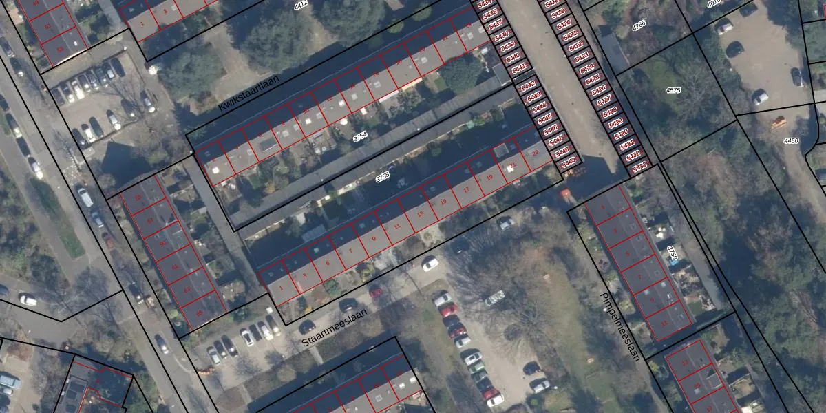 Staartmeeslaan 13 is gelegen op kadastraal perceel BIL01E3755. Deze kadastrale aanduiding is uniek en wordt gebruikt door het Kadaster om eigendomsrechten en andere zakelijke rechten vast te leggen. Het perceel maakt onderdeel uit van de kadastrale gemeente De Bilt.