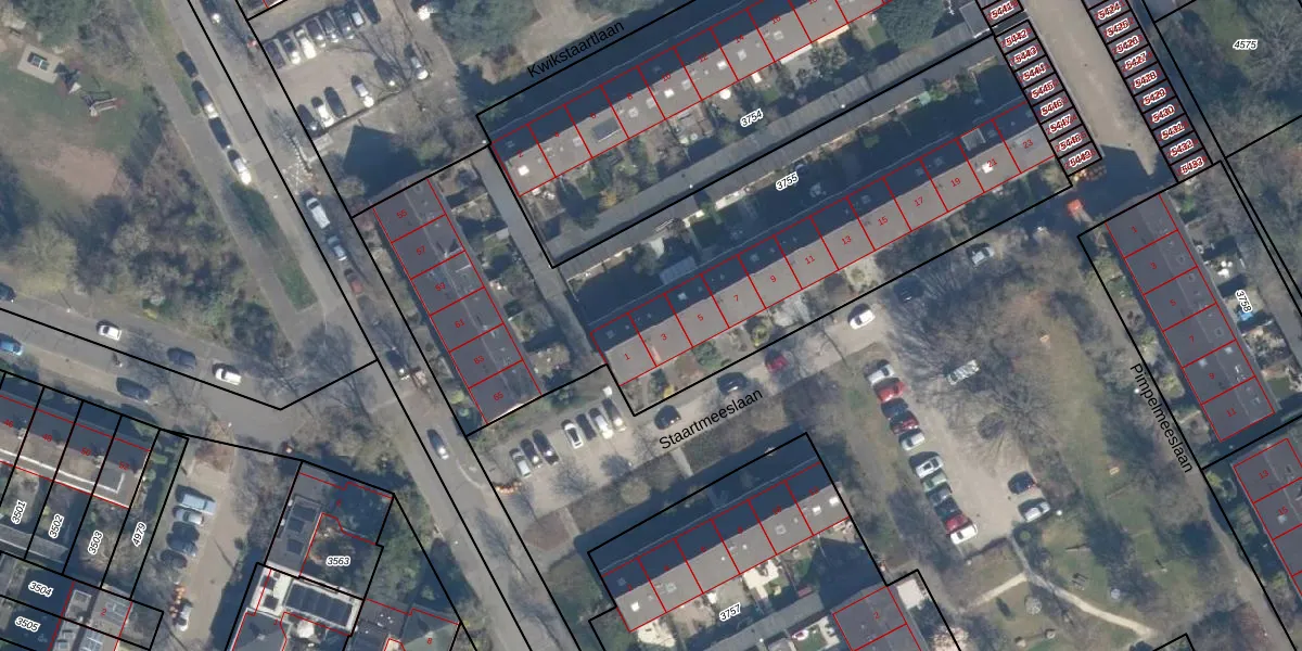 Staartmeeslaan 3 is gelegen op kadastraal perceel BIL01E3755. Deze kadastrale aanduiding is uniek en wordt gebruikt door het Kadaster om eigendomsrechten en andere zakelijke rechten vast te leggen. Het perceel maakt onderdeel uit van de kadastrale gemeente De Bilt.