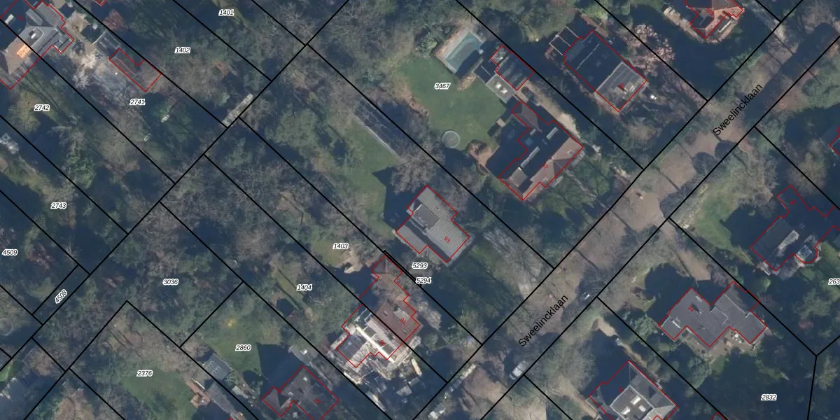 Het perceel waarop Sweelincklaan 93 staat heeft een oppervlakte van 1956 m². Dit is een zeer groot perceel. De perceeloppervlakte wordt geregistreerd door het Kadaster. Gedetailleerde informatie over de maten van dit perceel kunt u vinden in het rapport Kadastrale kaart met maatvoering van Sweelincklaan 93.