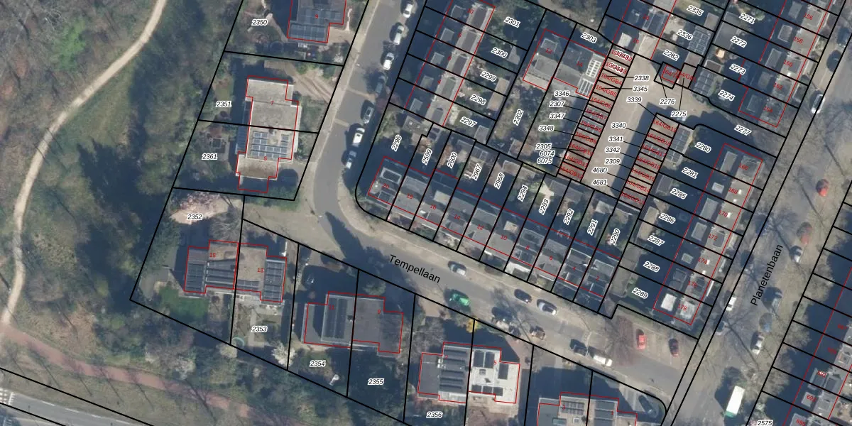 Het perceel waarop Tempellaan 16 staat heeft een oppervlakte van 157 m². Dit is een middelgroot perceel. De perceeloppervlakte wordt geregistreerd door het Kadaster. Gedetailleerde informatie over de maten van dit perceel kunt u vinden in het rapport Kadastrale kaart met maatvoering van Tempellaan 16.