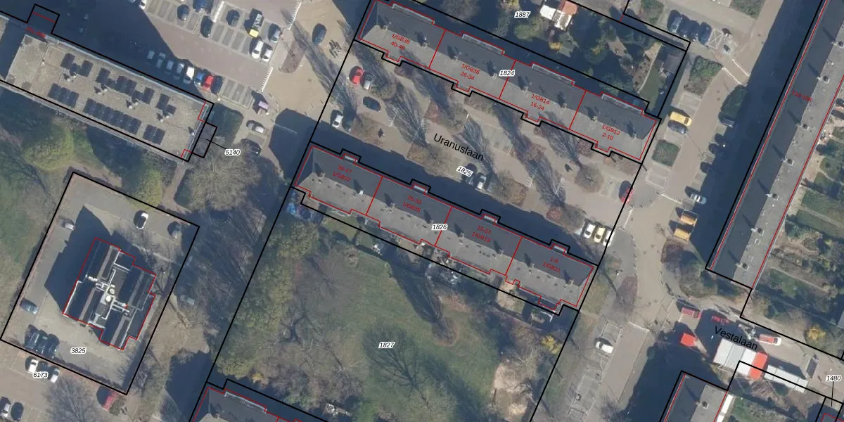 Het perceel waarop Uranuslaan 33 staat heeft een oppervlakte van 1064 m². Dit is een zeer groot perceel. De perceeloppervlakte wordt geregistreerd door het Kadaster. Gedetailleerde informatie over de maten van dit perceel kunt u vinden in het rapport Kadastrale kaart met maatvoering van Uranuslaan 33.