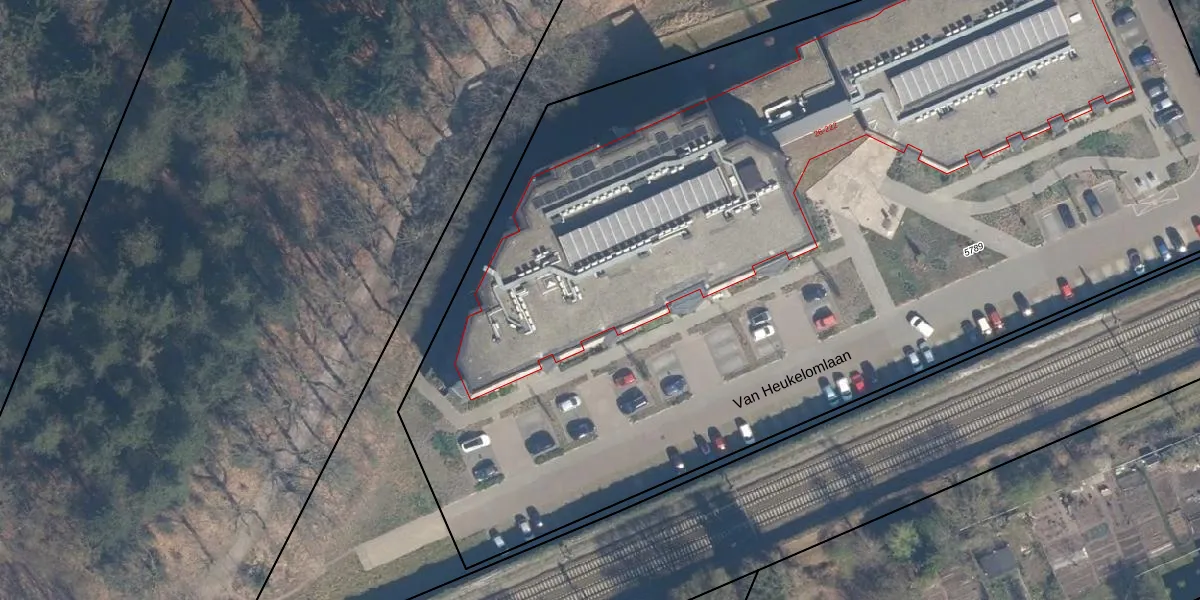 Het perceel waarop Van Heukelomlaan 132 staat heeft een oppervlakte van 8410 m². Dit is een zeer groot perceel. De perceeloppervlakte wordt geregistreerd door het Kadaster. Gedetailleerde informatie over de maten van dit perceel kunt u vinden in het rapport Kadastrale kaart met maatvoering van Van Heukelomlaan 132.