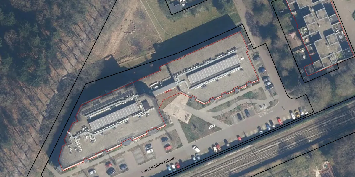 Het perceel waarop Van Heukelomlaan 214 staat heeft een oppervlakte van 8410 m². Dit is een zeer groot perceel. De perceeloppervlakte wordt geregistreerd door het Kadaster. Gedetailleerde informatie over de maten van dit perceel kunt u vinden in het rapport Kadastrale kaart met maatvoering van Van Heukelomlaan 214.
