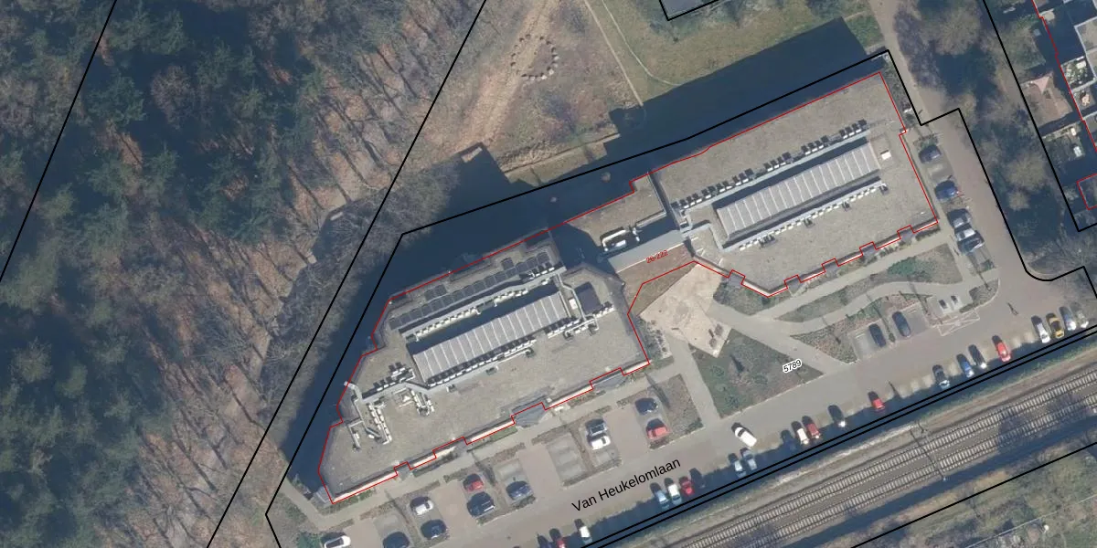 Het perceel waarop Van Heukelomlaan 94 staat heeft een oppervlakte van 8410 m². Dit is een zeer groot perceel. De perceeloppervlakte wordt geregistreerd door het Kadaster. Gedetailleerde informatie over de maten van dit perceel kunt u vinden in het rapport Kadastrale kaart met maatvoering van Van Heukelomlaan 94.