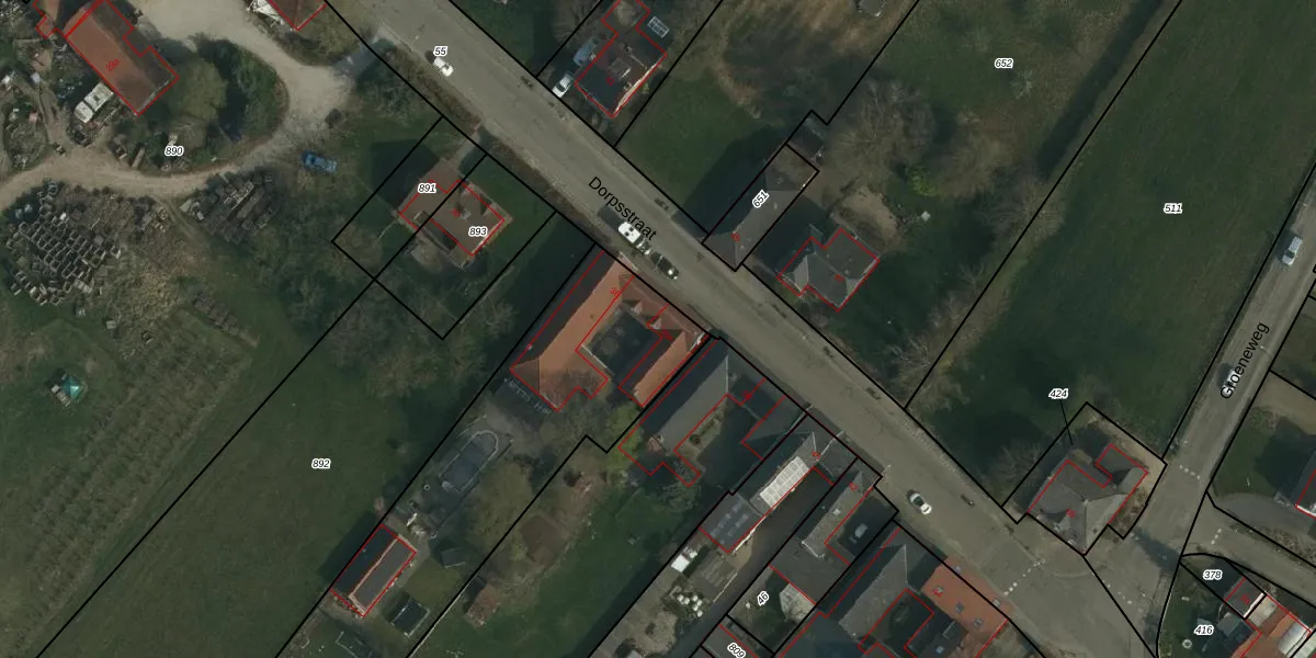 Het perceel waarop Dorpsstraat 36-a staat heeft een oppervlakte van 2620 m². Dit is een zeer groot perceel. De perceeloppervlakte wordt geregistreerd door het Kadaster. Gedetailleerde informatie over de maten van dit perceel kunt u vinden in het rapport Kadastrale kaart met maatvoering van Dorpsstraat 36-a.