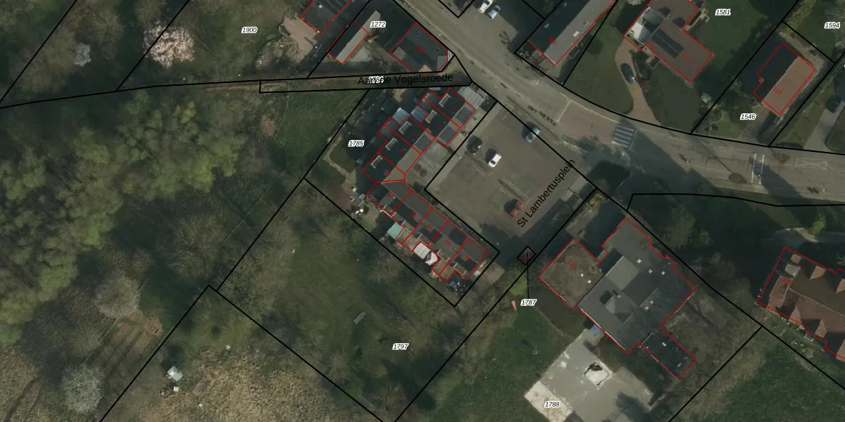 Het perceel waarop St Lambertusplein 14 staat heeft een oppervlakte van 1295 m². Dit is een zeer groot perceel. De perceeloppervlakte wordt geregistreerd door het Kadaster. Gedetailleerde informatie over de maten van dit perceel kunt u vinden in het rapport Kadastrale kaart met maatvoering van St Lambertusplein 14.